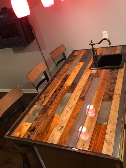 Bar Top Made From Pallet Boards And Covered With Epoxy Basement Bar Designs Outdoor Kitchen Countertops Pallet Bar - Our epoxy rep told use that it would need a sanding and top coating ever 7 years or so, but you can also top coat with a polyspartic or urathane.